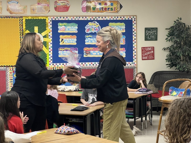 Carol Taylor and Angela Owen, both third-grade teachers at Taylor Elementary, received a surprise visit from the Department of Education today. Ms. Taylor and Mrs. Owen were recognized for the outstanding contributions they are making in their classrooms. Congratulations on your well-deserved recognition!