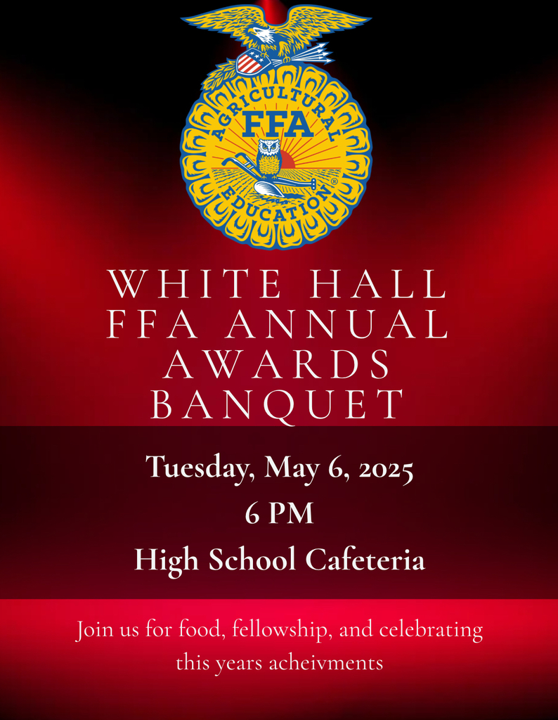 WHHS and WHMS will present a Christmas Concert on Monday, December 8. White Hall Middle School will perform at 6:00 PM and White Hall High School at 7:30 PM in the WHHS Performing Arts Center.